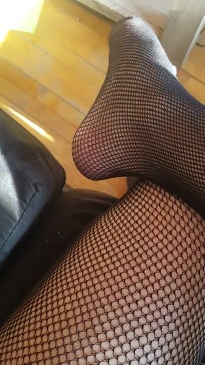 Giantess in black leggins sniffing her smelly trainers after long walking
