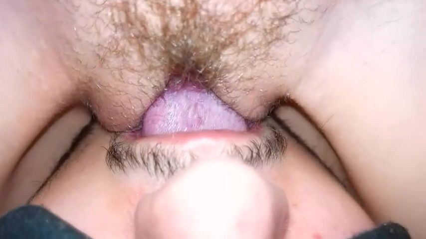 The wife moans from cunnilingus, close-up, sitting on her face with a wet pussy.