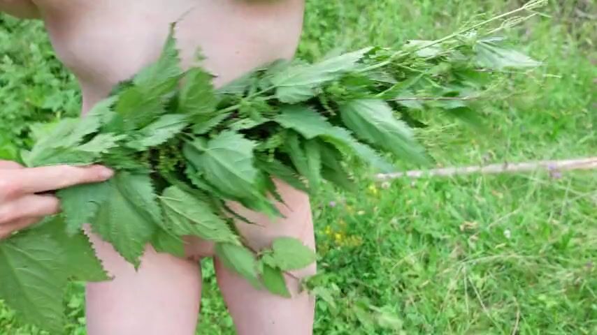 Femdom spanks me with nettles until I can't take it anymore! Then I jerked off totally public!