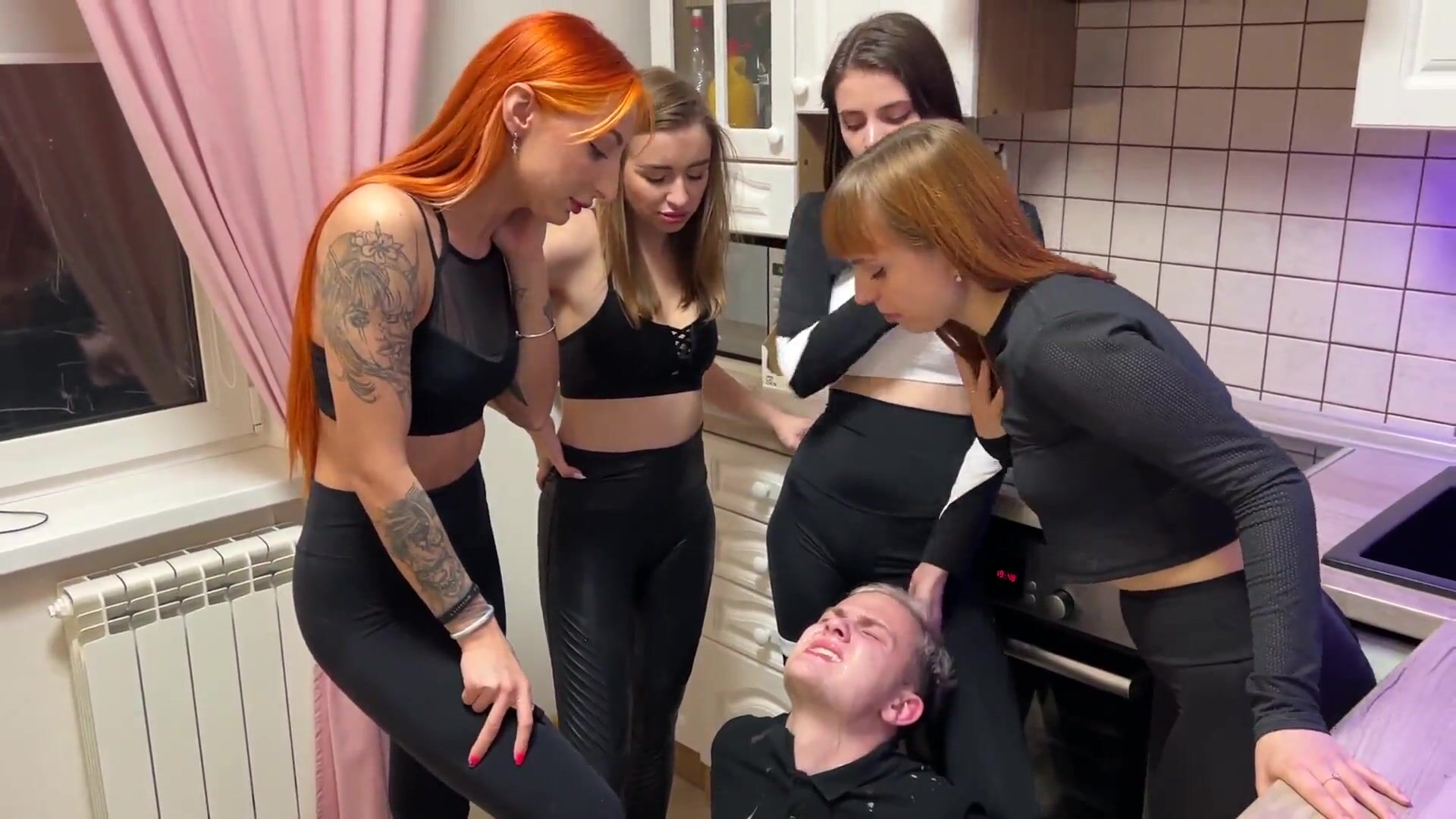 Mouth Spitting Femdom - Russian Sluts Humiliate Their Slave