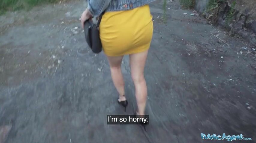 Public Agent Sexy redhead waitress sucks cock and gets fucked doggystyle outside in public